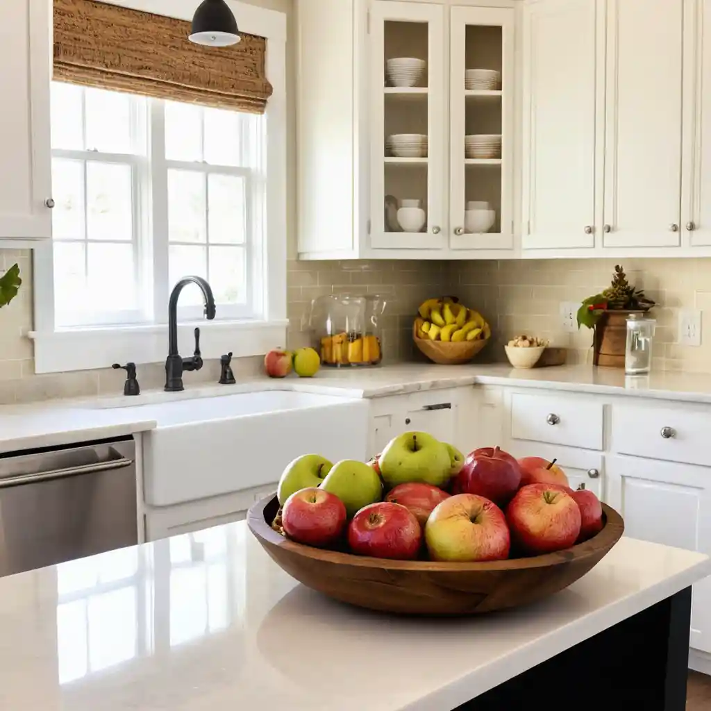 Fill bowls with apples, pears, or pomegranates. They double as decor and healthy snacks.