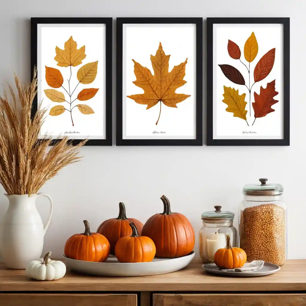 Swap your regular wall art for prints featuring fall leaves, pumpkins, or harvest themes. It’s an easy way to transform your walls.