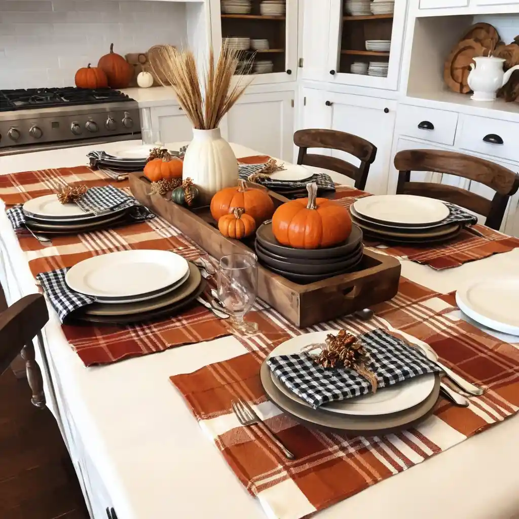 Replace your kitchen towels, table runners, and placemats with warm plaid or gingham patterns in earthy tones. They add a cozy and classic touch.