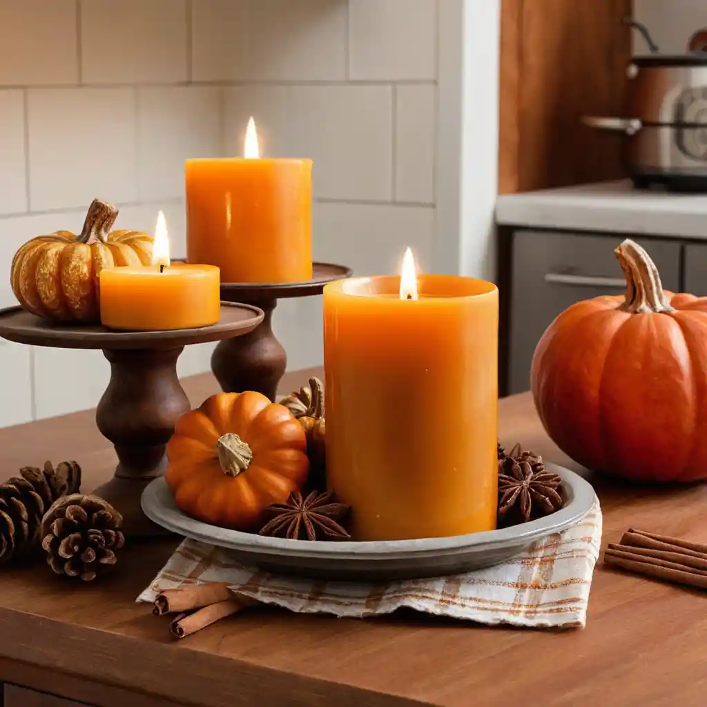 Light candles with pumpkin spice, cinnamon, or apple pie scents. Not only will your kitchen smell amazing, but it will also feel extra inviting.