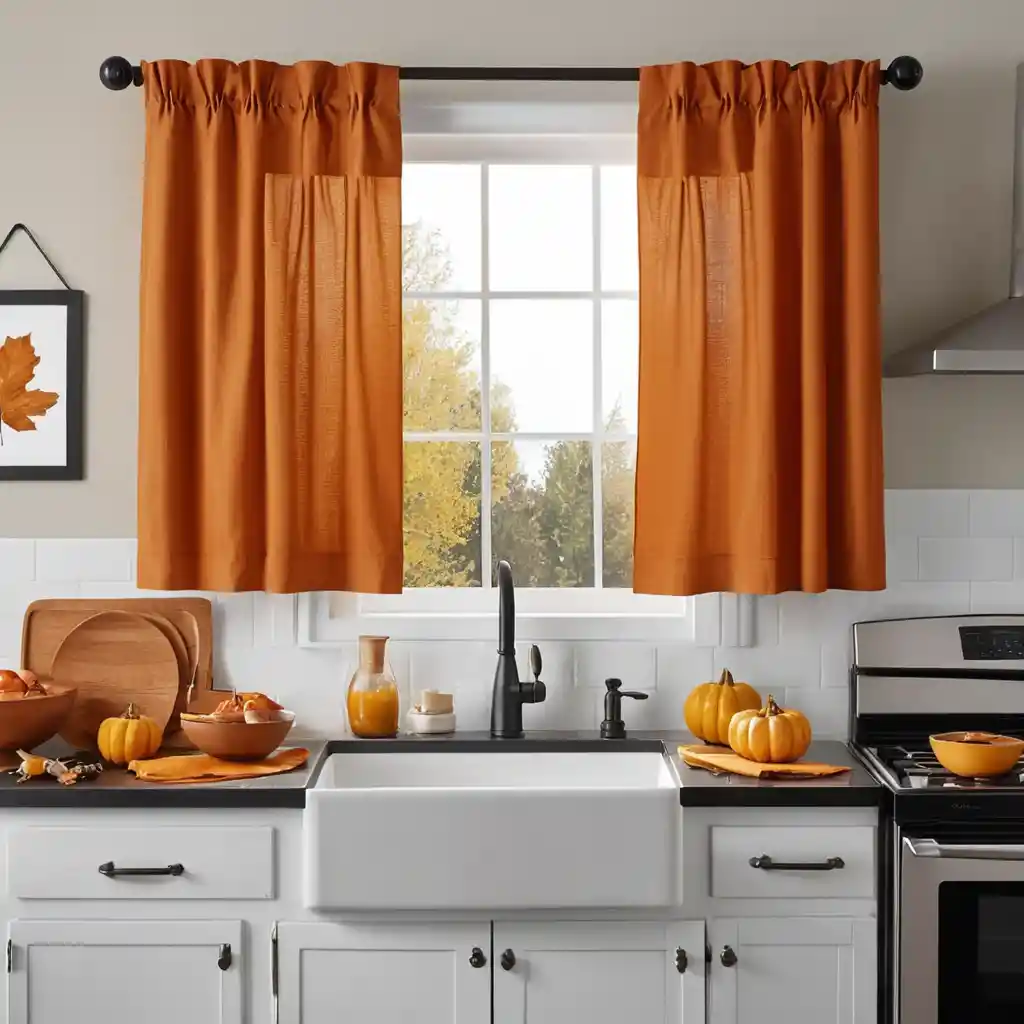 Choose curtains in burnt orange, mustard yellow, or deep red to add warmth to your kitchen. The color change instantly makes the space feel seasonally fresh.