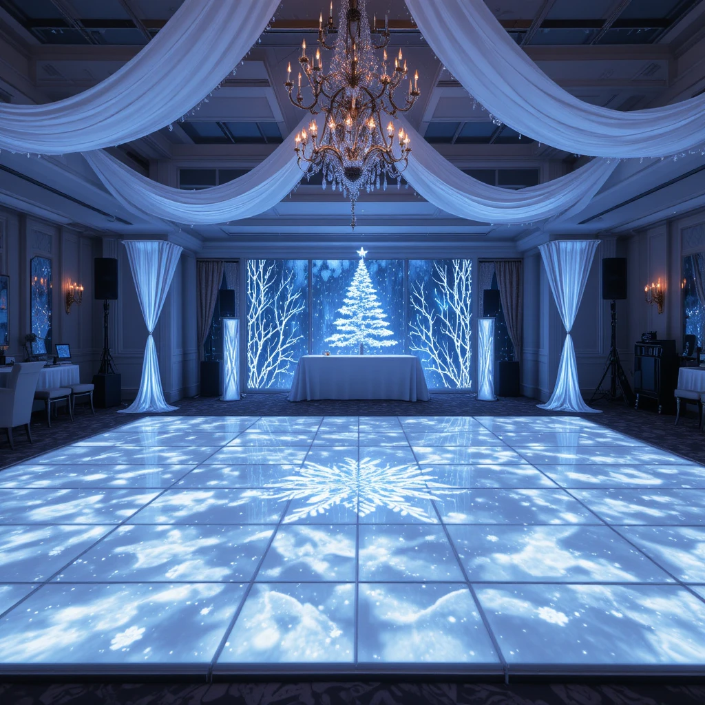 Cover the dance floor with a white vinyl wrap or a frosty projection design. This makes the center of the night feel like a frozen paradise.