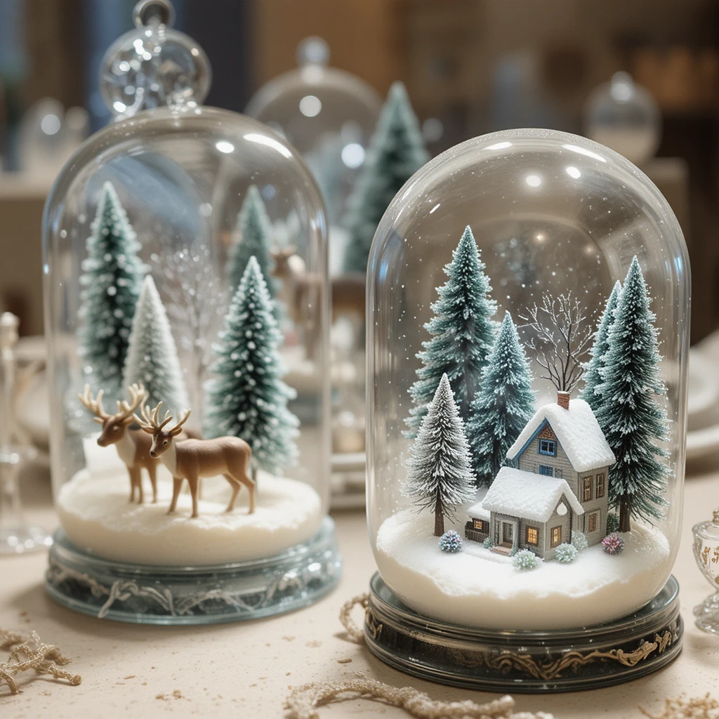 Fill clear globes with miniature winter scenes—tiny reindeer, frosted trees, or little cottages. Guests will admire the charm of these miniature wonders.