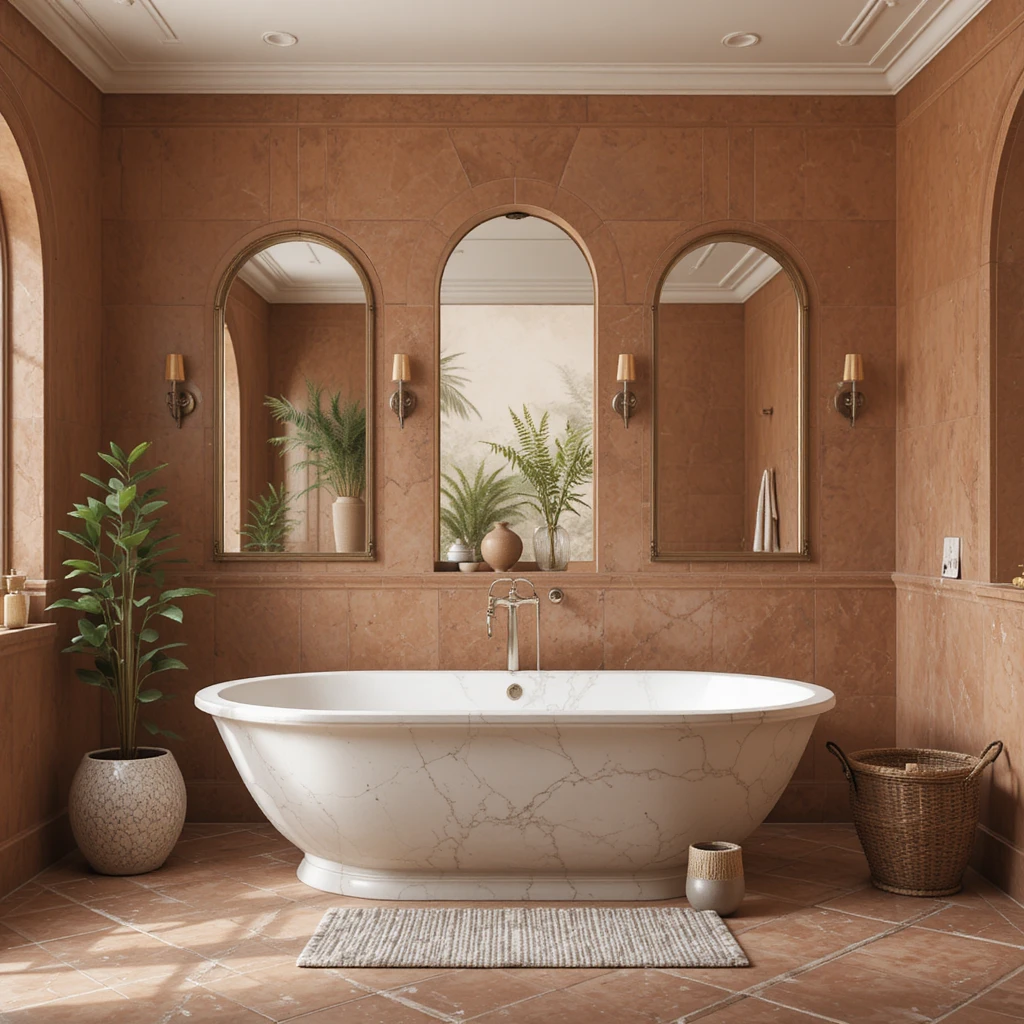 Introduce terracotta tiles, arched mirrors, and warm-toned walls. The Mediterranean influence makes your aesthetic bathroom design feel inviting and effortlessly luxurious.