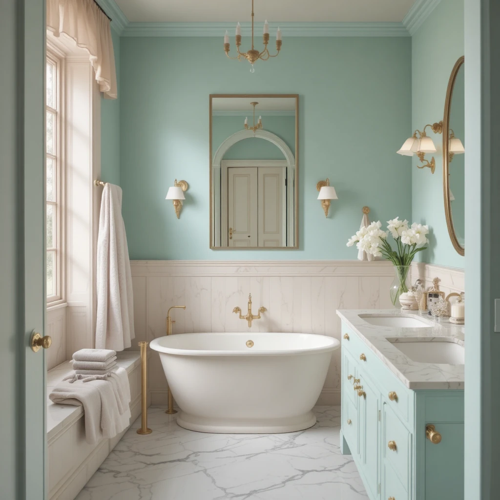 Soft hues like mint green, blush pink, or powder blue bring a refreshing yet calming energy. Pair them with gold fixtures or marble for a subtle touch of elegance.