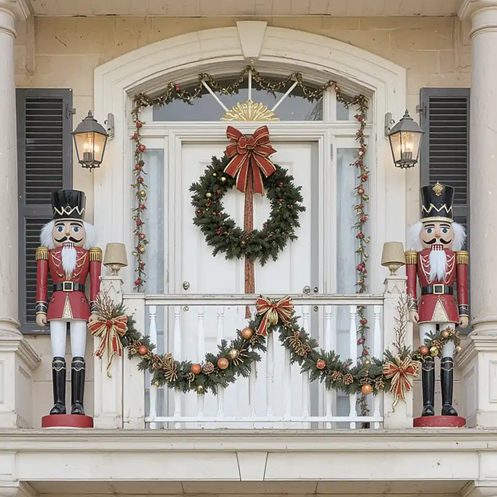 Add iconic nutcracker statues near your entrance or railing. They bring a timeless holiday charm while also serving as statement decor pieces.