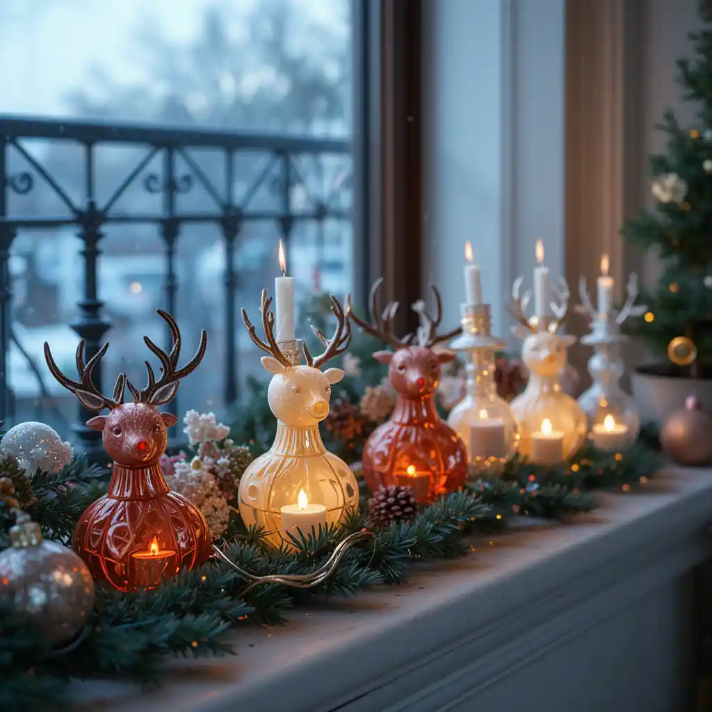 Decorate with themed candle holders shaped like reindeer, stars, or snowmen. Use flameless LED candles for safety while still achieving a warm flickering glow.