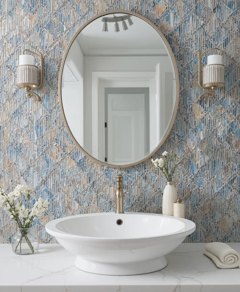 Incorporating a bold tile wall instantly upgrades any bathroom remodel. Use patterned, textured, or geometric tiles behind the vanity or shower area. This design approach adds visual depth while maintaining balance with neutral surrounding elements.
