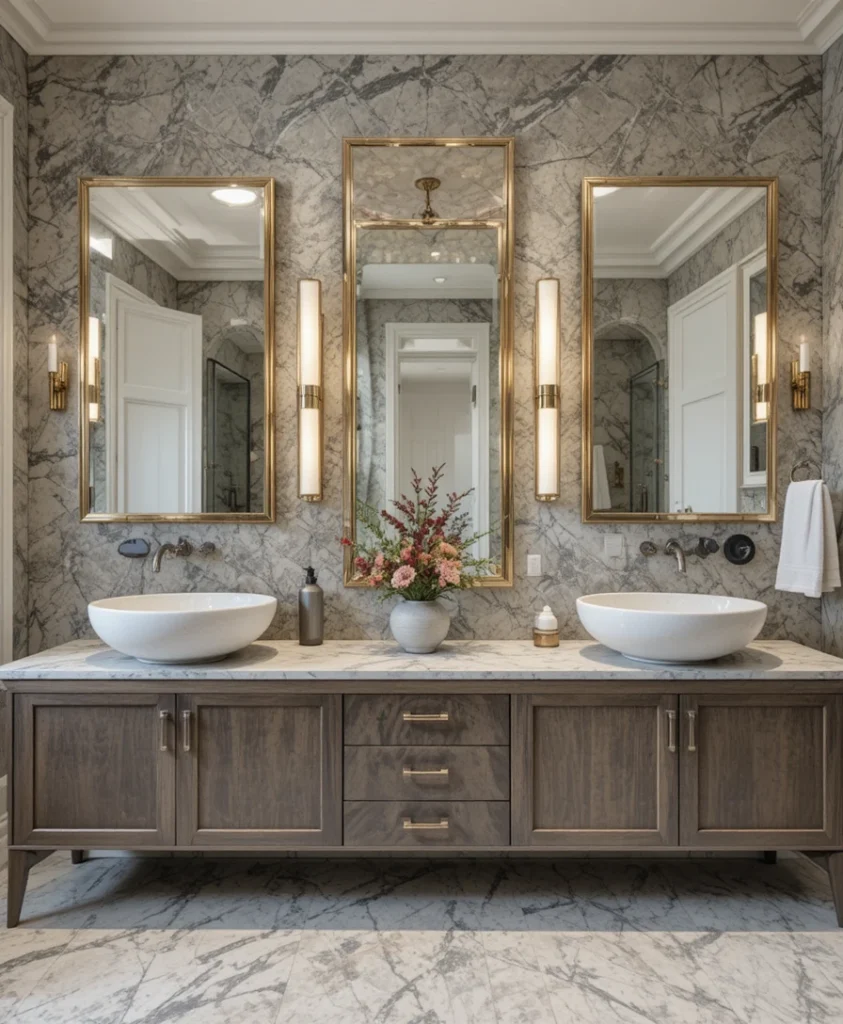 A double vanity bathroom remodel improves functionality for shared spaces. Separate sinks reduce congestion while offering symmetrical design appeal. Add under-sink storage to maintain organization.