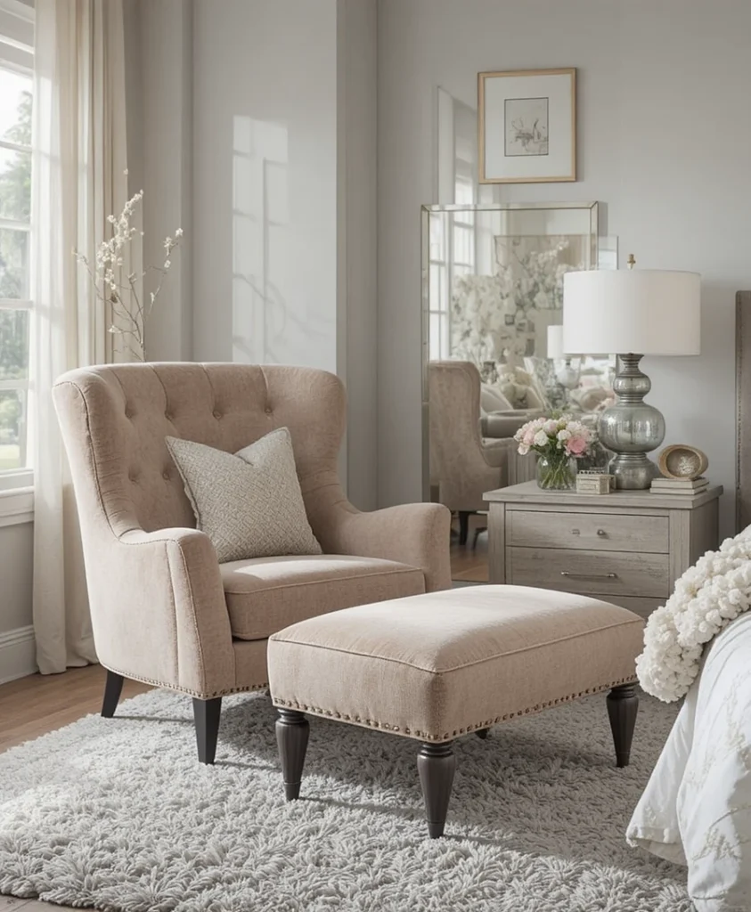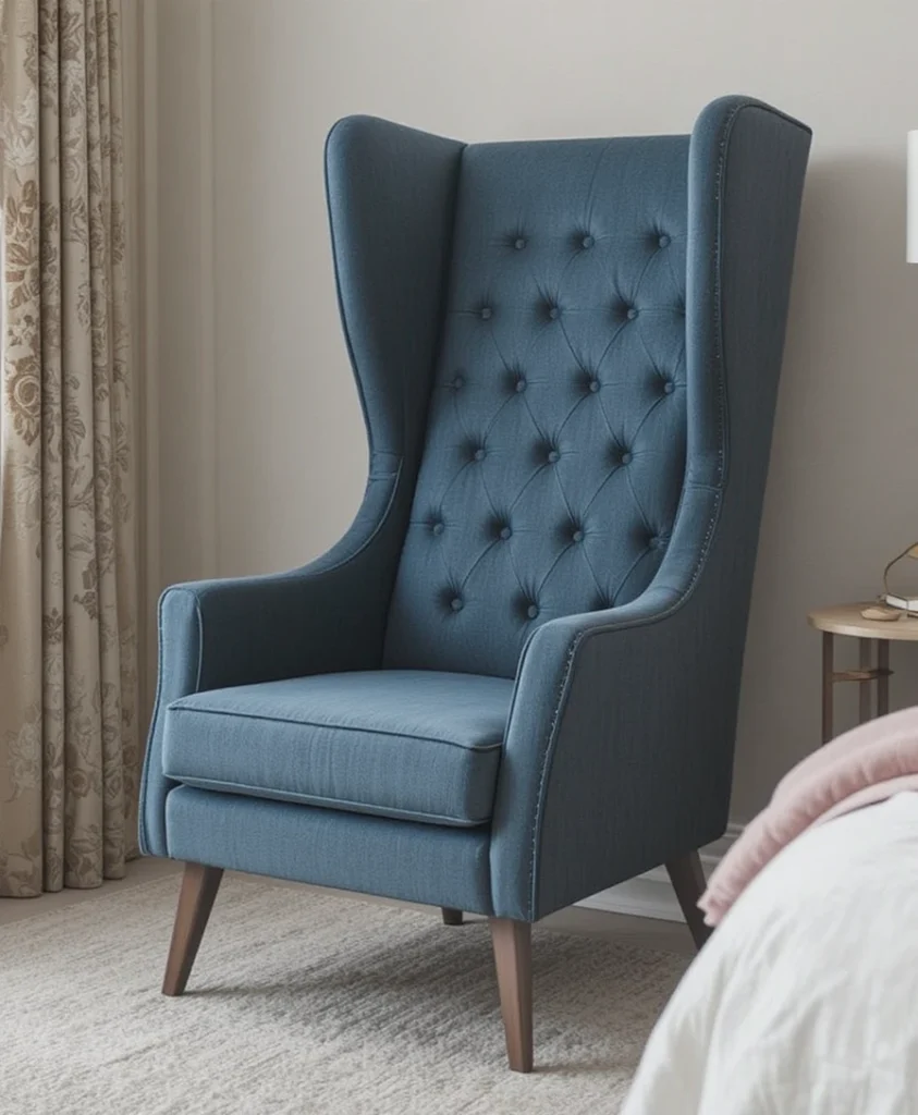 Wingback chairs are reimagined in bedroom chair ideas 2026 with slimmer profiles and contemporary fabrics. They provide privacy, comfort, and a sense of enclosure, making them ideal for cozy bedroom corners. Updated designs keep them fresh and far from traditional.