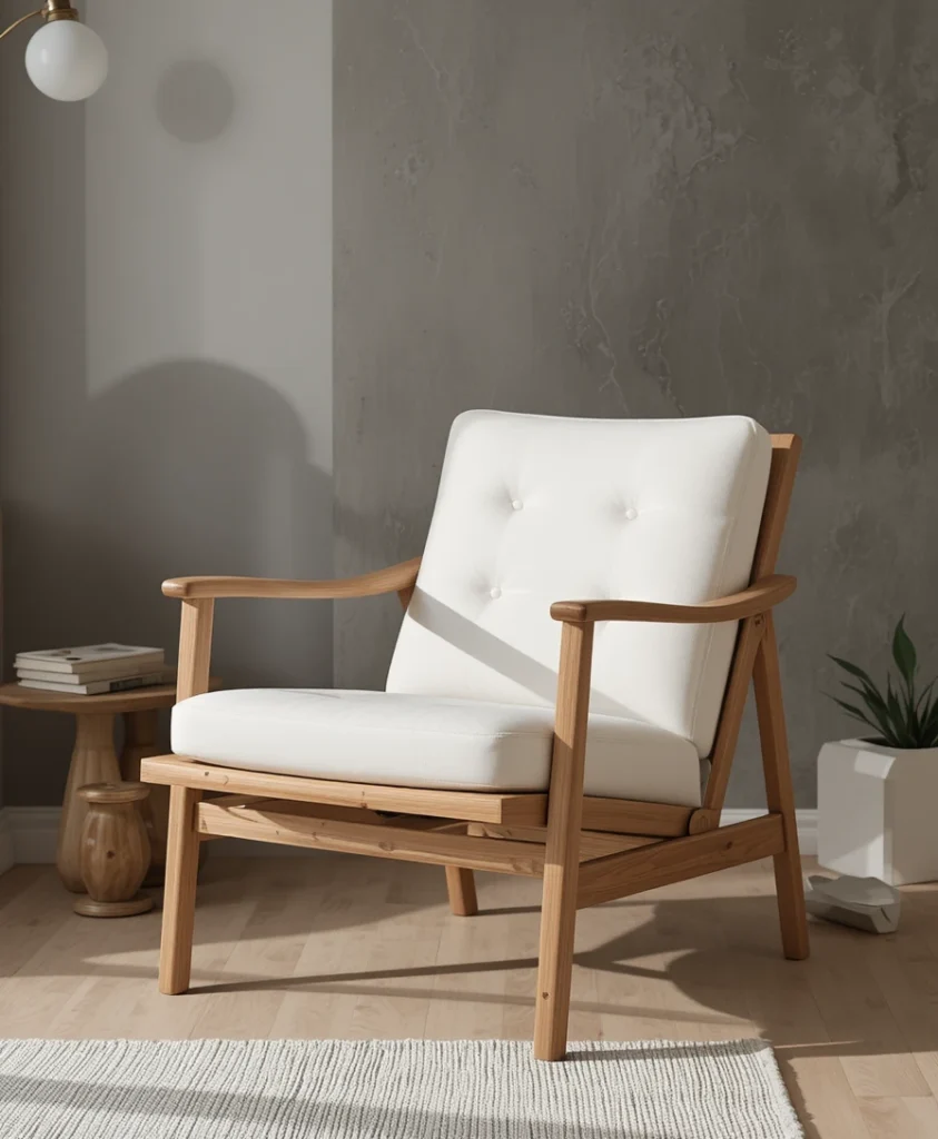 Natural materials are central to bedroom chair ideas 2026, and wooden lounge chairs fit perfectly. Clean lines, warm wood tones, and subtle craftsmanship create a calming presence. These chairs complement Scandinavian, Japandi, and minimalist bedrooms while maintaining a timeless, grounded aesthetic.