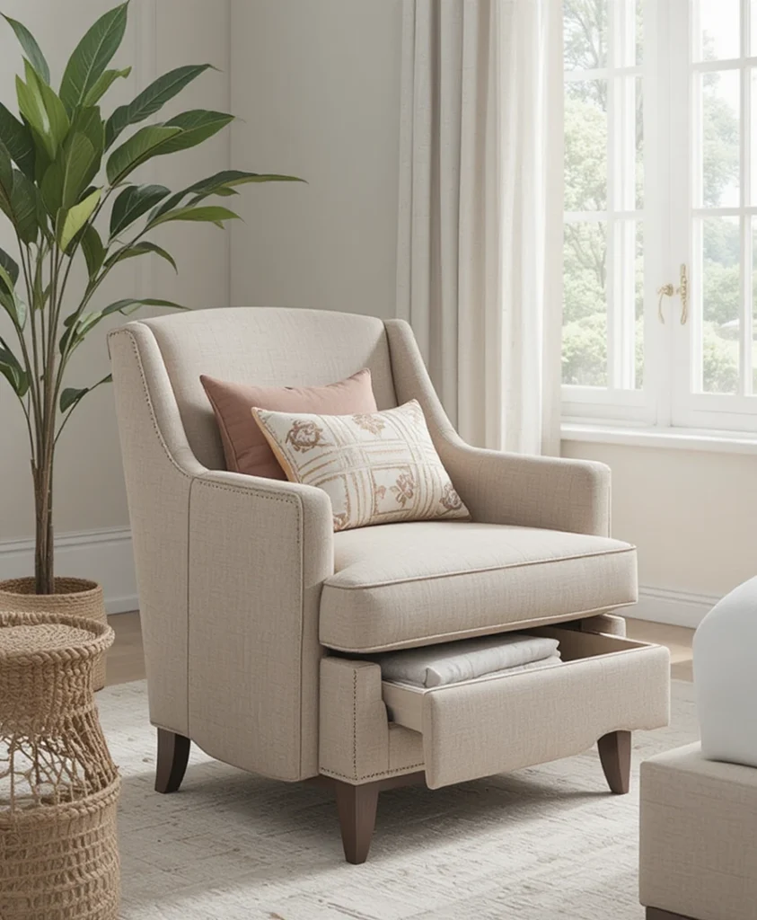 4. Upholstered Armchair with Built-In Storage