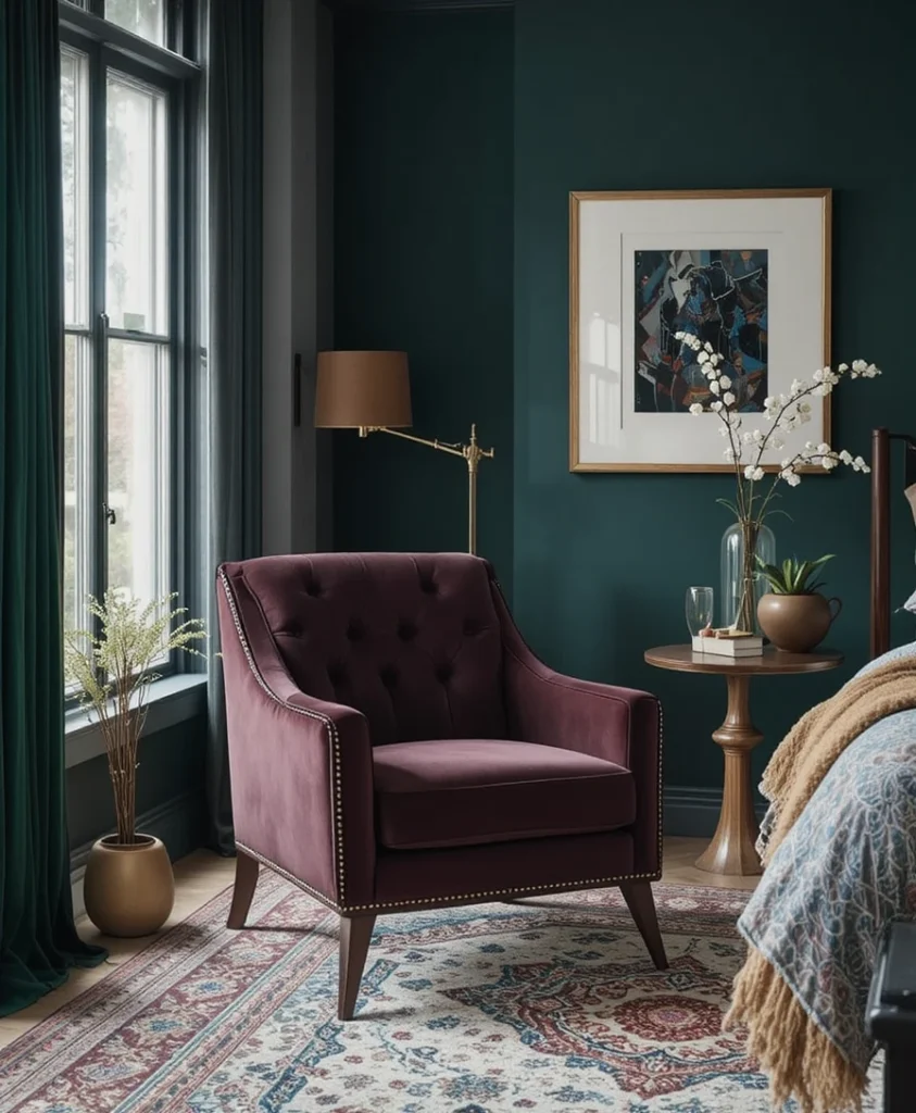 7. Velvet Accent Chair with Jewel Tones