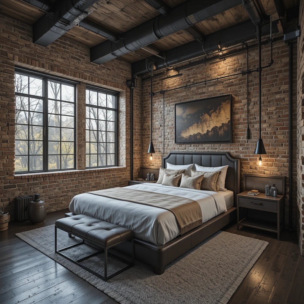 This style pairs stone bricks, iron bars, and polished andesite for a factory-like look. Open layouts and metallic finishes enhance the modern industrial charm, creating a trendy bedroom design.