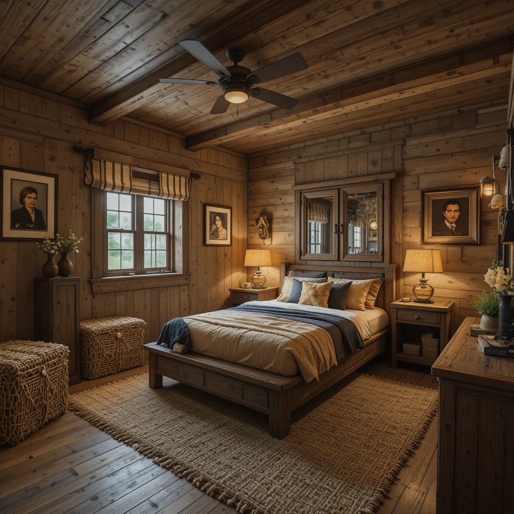 A rustic wooden cabin bedroom adds warmth with oak planks, logs, and lantern lighting. Pairing simple beds with bookshelves and natural touches creates a snug and earthy retreat, perfect for players who enjoy traditional builds.