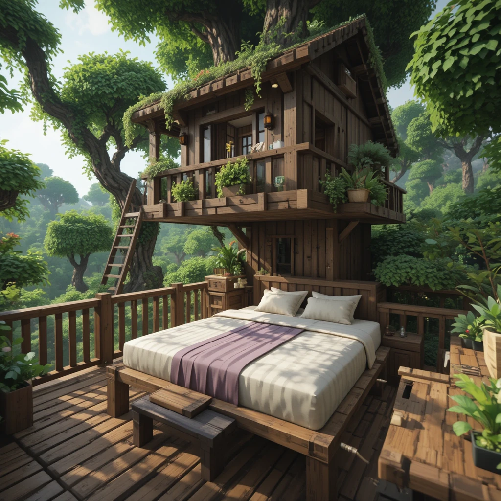 Building your bedroom in the treetops offers an adventurous perspective. Wooden planks, ladders, and leafy surroundings bring a refreshing outdoor feel with comfort high above the ground.