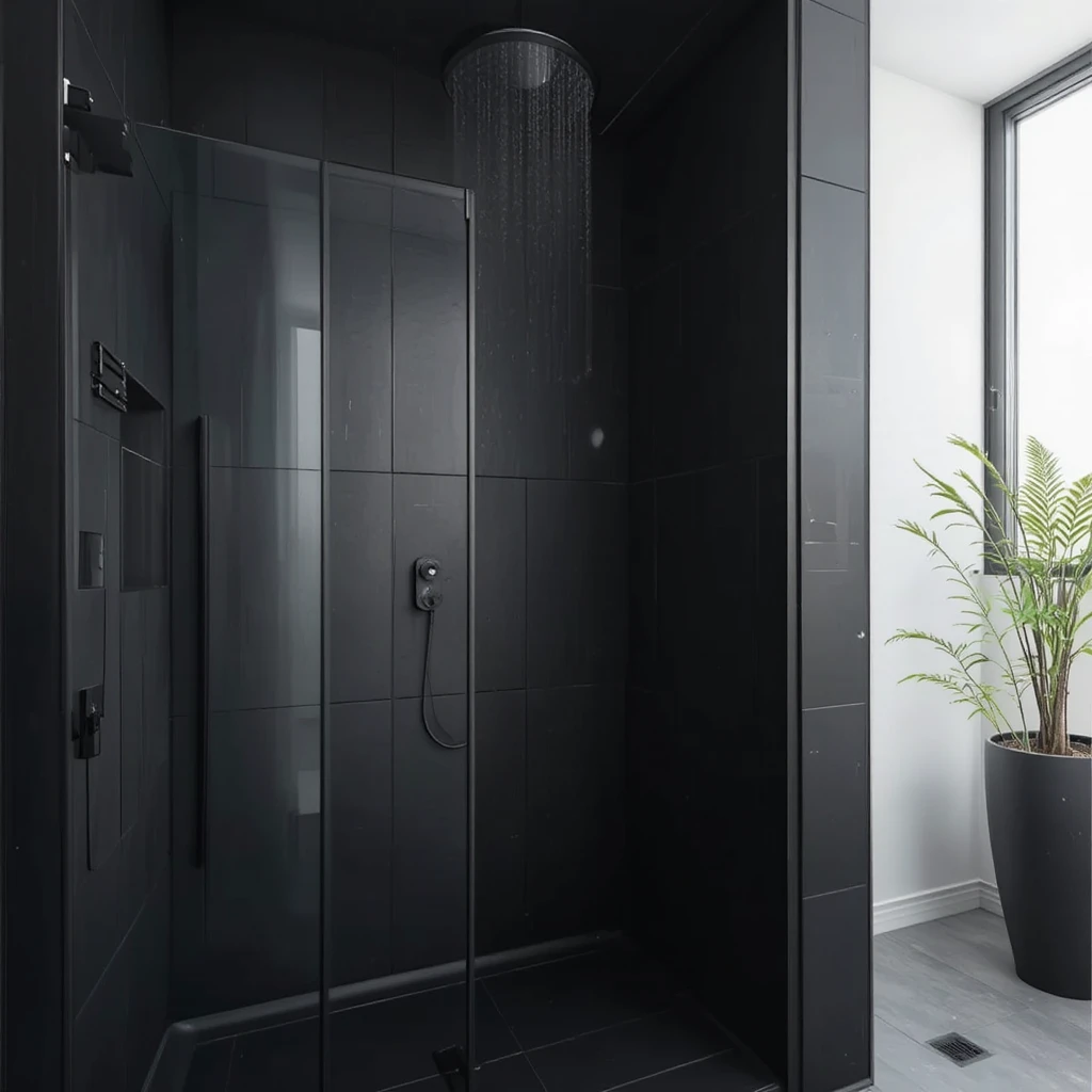 11. Minimalist All-Black Shower Zone