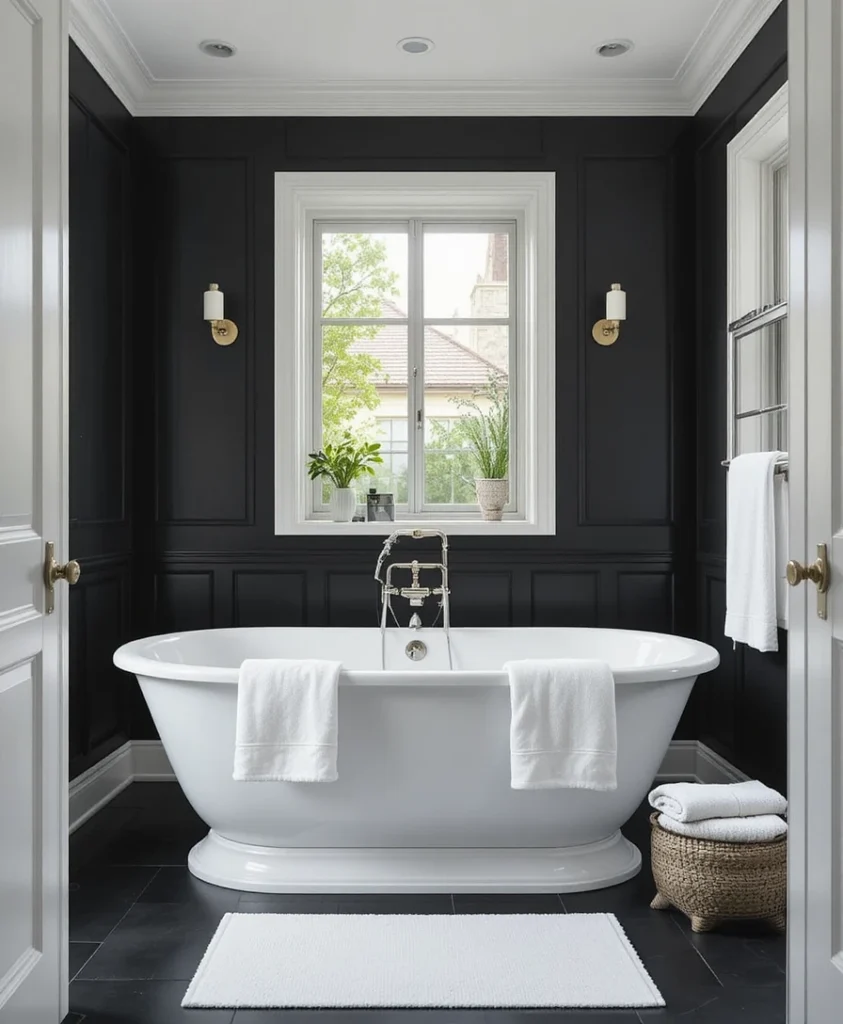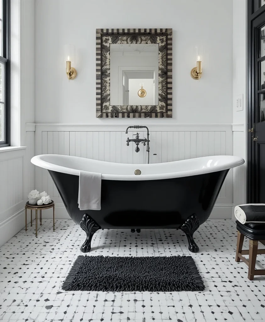 For a dash of elegance and nostalgia, add a black clawfoot bathtub. Its dramatic silhouette stands out beautifully against a crisp white background, giving your bathroom a vintage yet modern aesthetic.