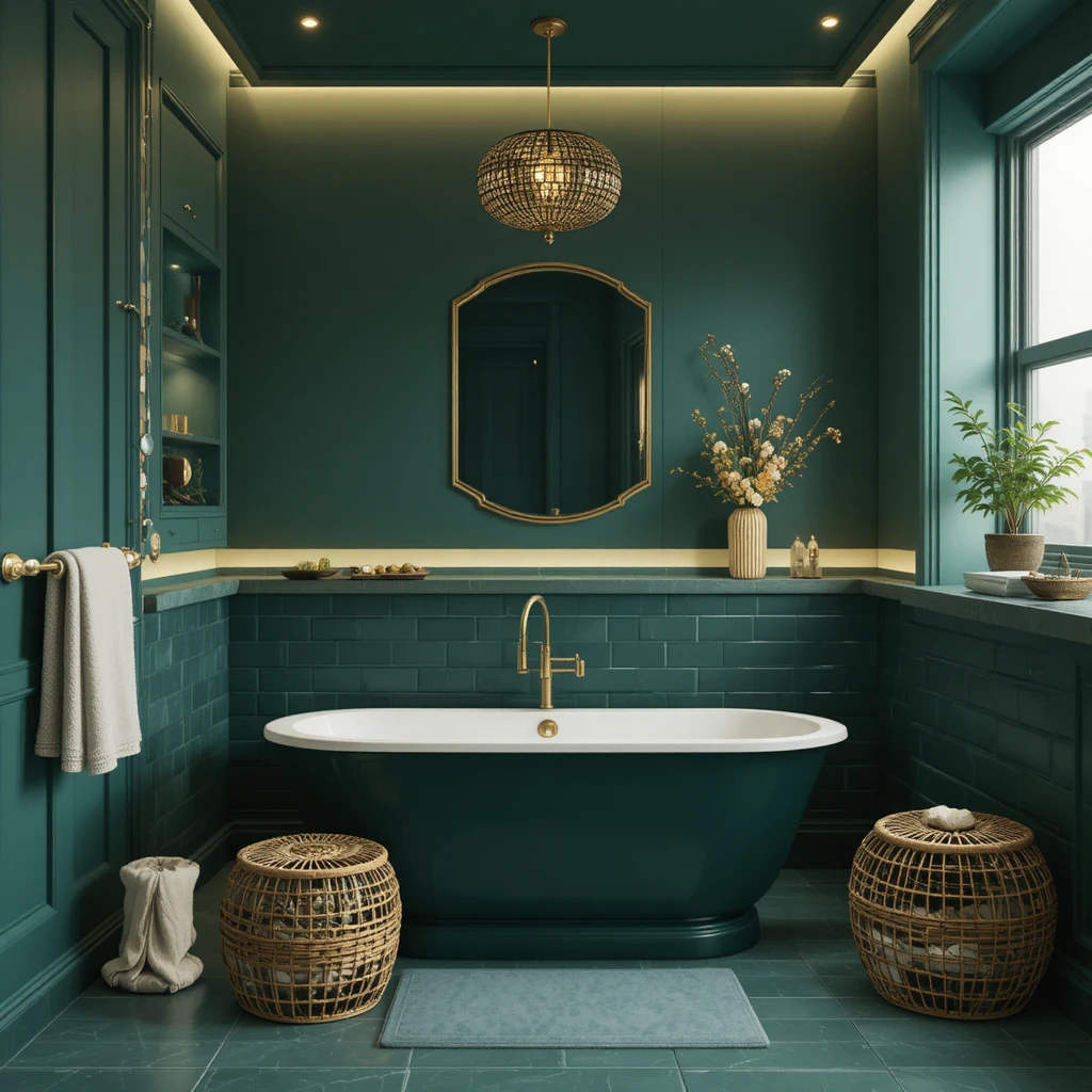 Darker and moodier than emerald, forest green creates a smooth and grounded feeling. It works wonderfully with brass, rattan, and warm LED lighting. This is one of the bold bathroom colour ideas that gives the room a peaceful yet dramatic backdrop.