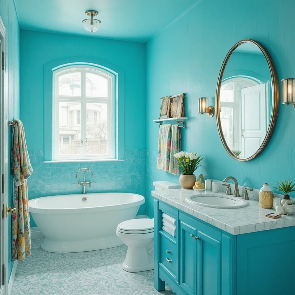Cobalt blue injects bold personality into a bathroom while maintaining a crisp and energetic feel. It pairs beautifully with chrome fixtures and gives the space a clean, fresh edge. This tone works wonderfully in coastal-inspired designs.