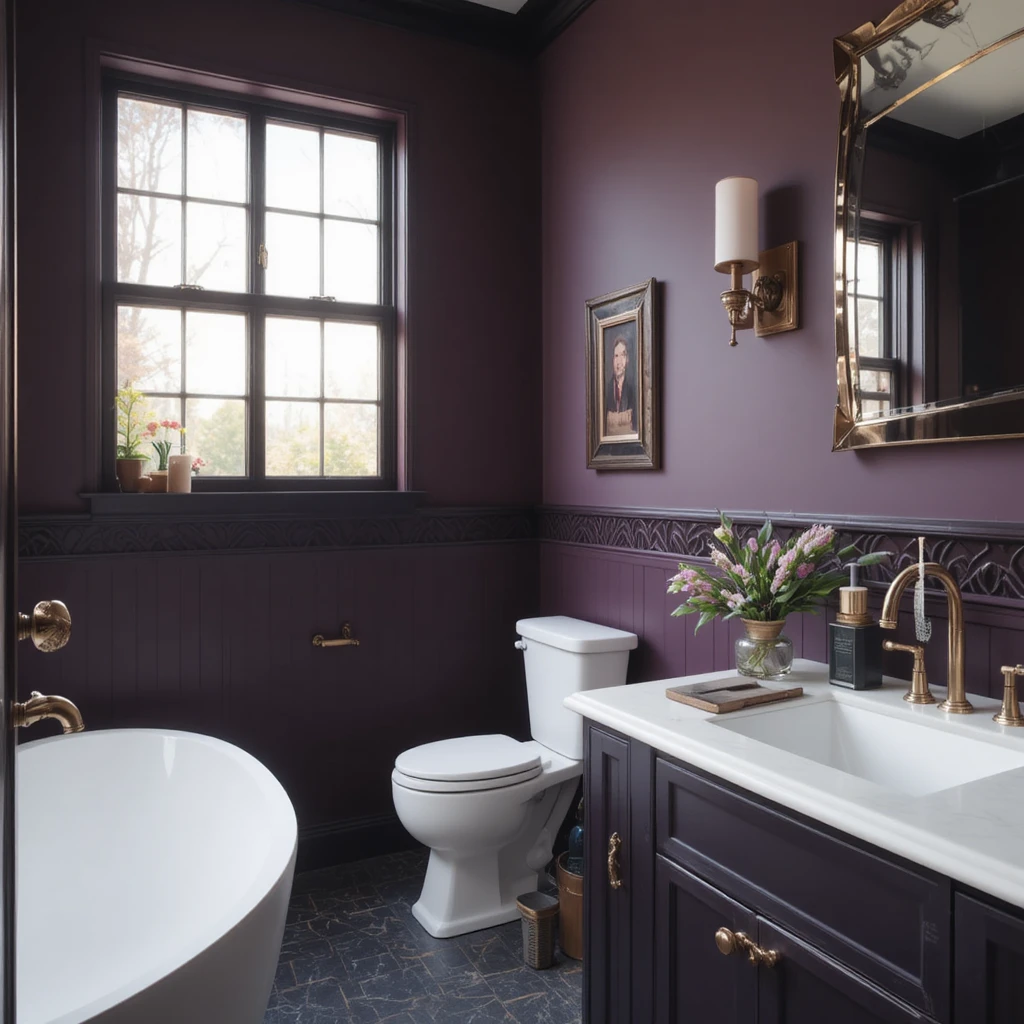 Plum is deep, mysterious and elegant—ideal for those who love dramatic tones. It looks gorgeous with gold or matte black hardware and adds a lavish character to the bathroom. This is one of the bold bathroom colour ideas great for a luxurious upgrade.