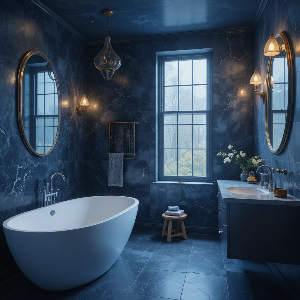 Midnight blue brings an alluring and immersive feel, perfect for creating a relaxing spa-like atmosphere. When paired with warm lights, it produces a moody yet comforting effect. It adds depth without overwhelming the space.