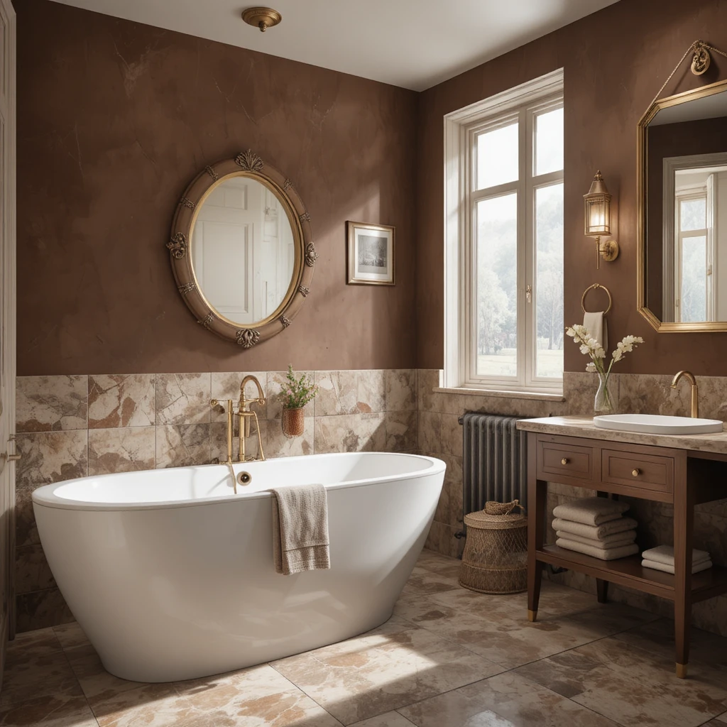 Copper brown infuses warm metallic undertones into the bathroom, creating a rich and inviting style. It pairs well with natural stone and wood, giving the space a blend of earthiness and luxury. This bold shade delivers a grounded yet luminous finish.