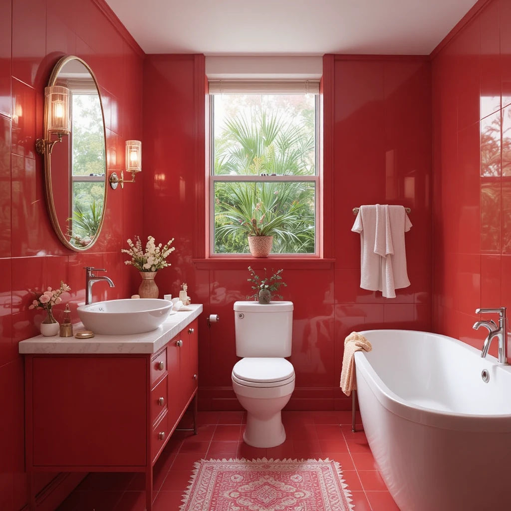 A bright red bathroom brings undeniable intensity and modern boldness. This shade enhances the mood, adds drama, and becomes the focal point of your interior. When balanced with neutrals, it provides a fearless yet harmonious atmosphere.