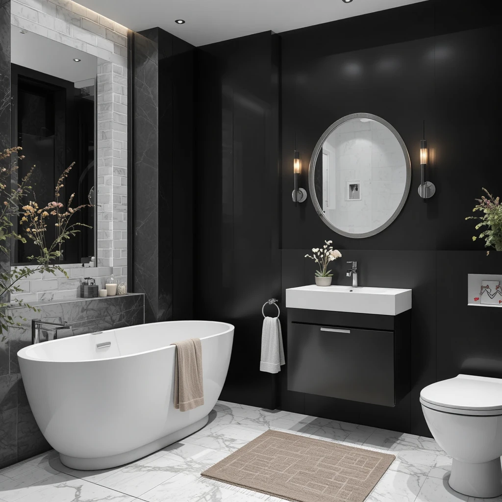 A full black bathroom is one of the most daring choices. The sleek tone instantly creates sophistication and a modern luxury feel. Add textured tiles or metallic accessories to prevent flatness and bring dimensional contrast.