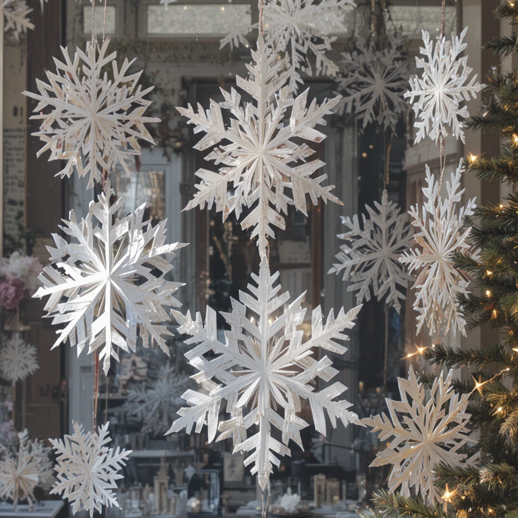 Cutting out paper snowflakes is a timeless tradition. Use recycled paper, magazines, or old newspapers to make intricate designs, then tape them to windows or hang them from the ceiling to mimic a winter wonderland.