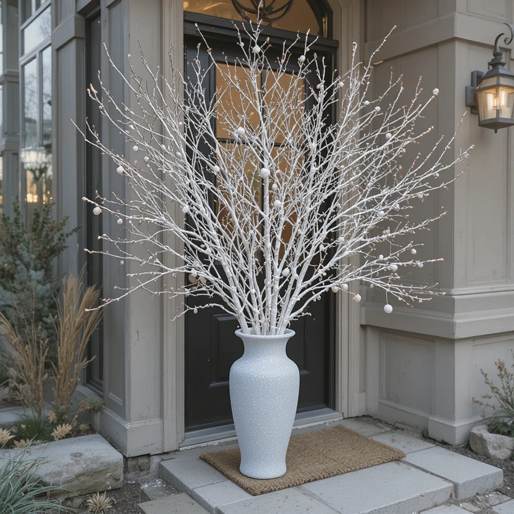 Bundle together branches, spray them with white paint or glitter, and place them in a vase by the entryway. This striking yet affordable arrangement looks chic and winter-inspired.