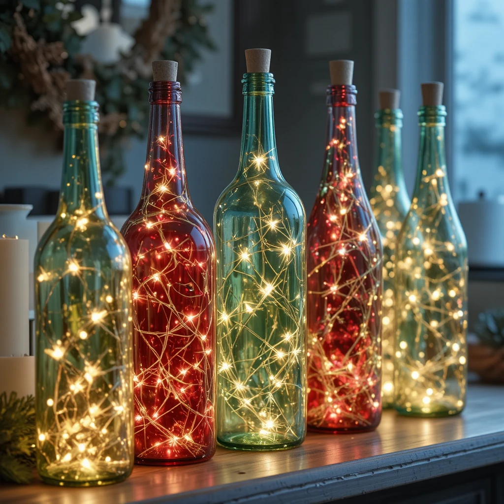 Reuse old glass bottles by slipping fairy lights inside. The sparkling glow adds a cozy vibe, and placing several together on a mantel or dining table creates a magical centerpiece without breaking the budget.