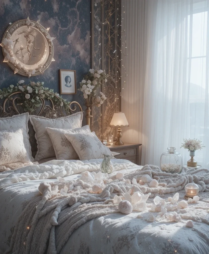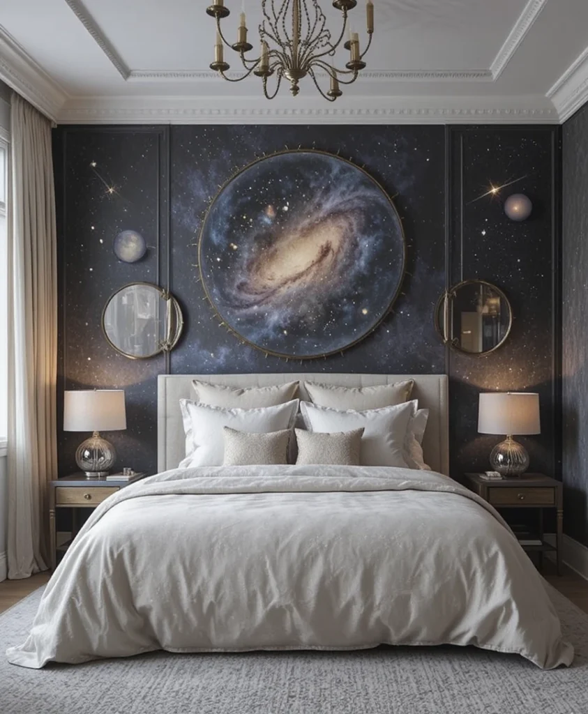 A celestial bedroom isn’t just visually stunning—it creates a calming retreat that feels otherworldly yet deeply personal.