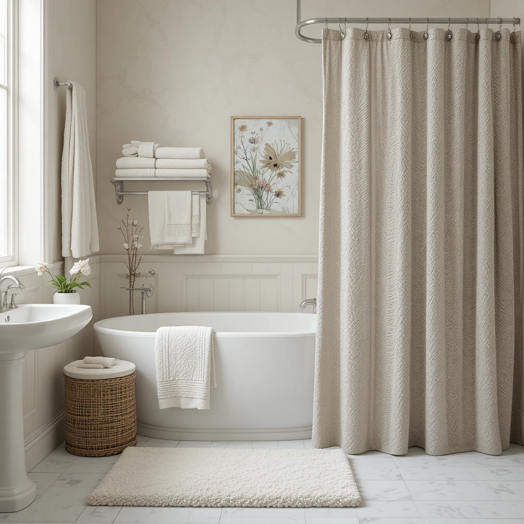 High-quality towels, bath mats, and shower curtains elevate comfort and aesthetics. Plush textures offer a welcoming feel while complementing your decor. This finishing touch completes the warmth of your chic bathroom makeover.