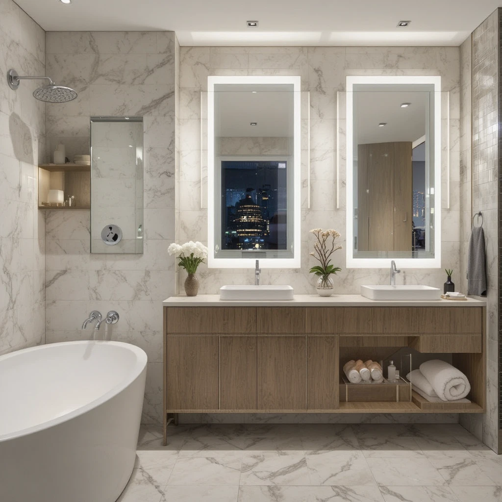 Beautiful lighting can transform your entire ambiance. Opt for sculptural pendants, glowing sconces, or warm LED mirrors that set a refined tone. Thoughtful illumination enhances your chic bathroom makeover by highlighting textures and architectural lines.