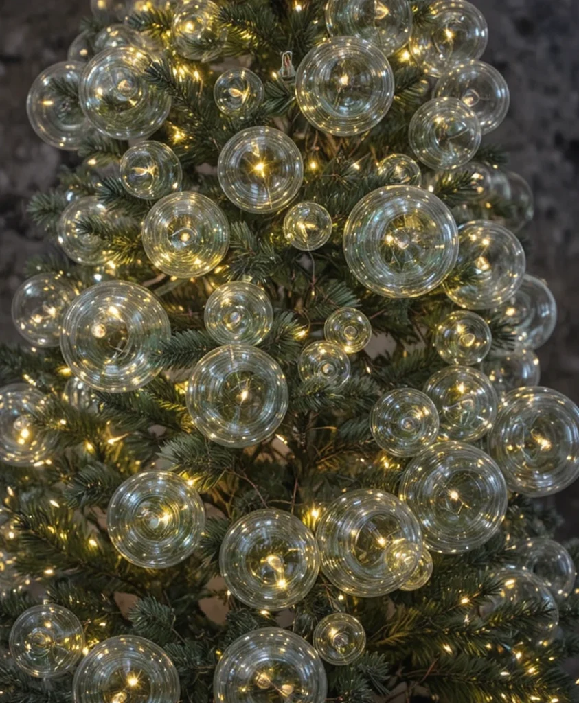 Lights within tiny tubes create a dynamic bubble effect. These add depth and a playful motion, making your Christmas tree string ideas innovative and visually captivating.