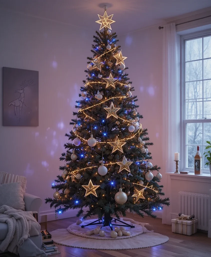 Twinkle lights simulate stars flickering across the tree, creating movement and sparkle. This approach adds a whimsical charm to your decorations, making the tree feel lively and enchanting.