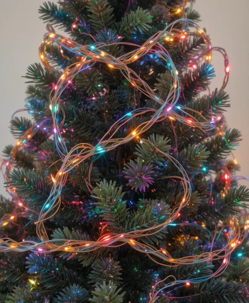Fine copper wire strings are nearly invisible when wrapped around the tree. These delicate lights give an ethereal effect, subtly illuminating ornaments without overwhelming the overall design.