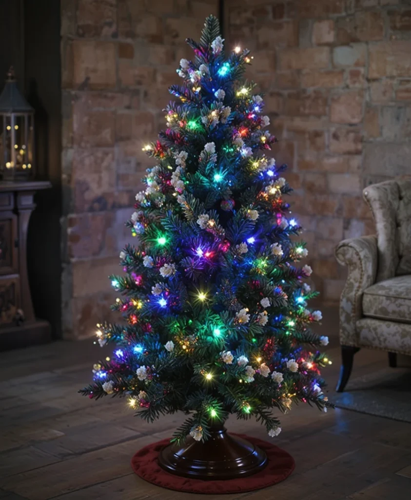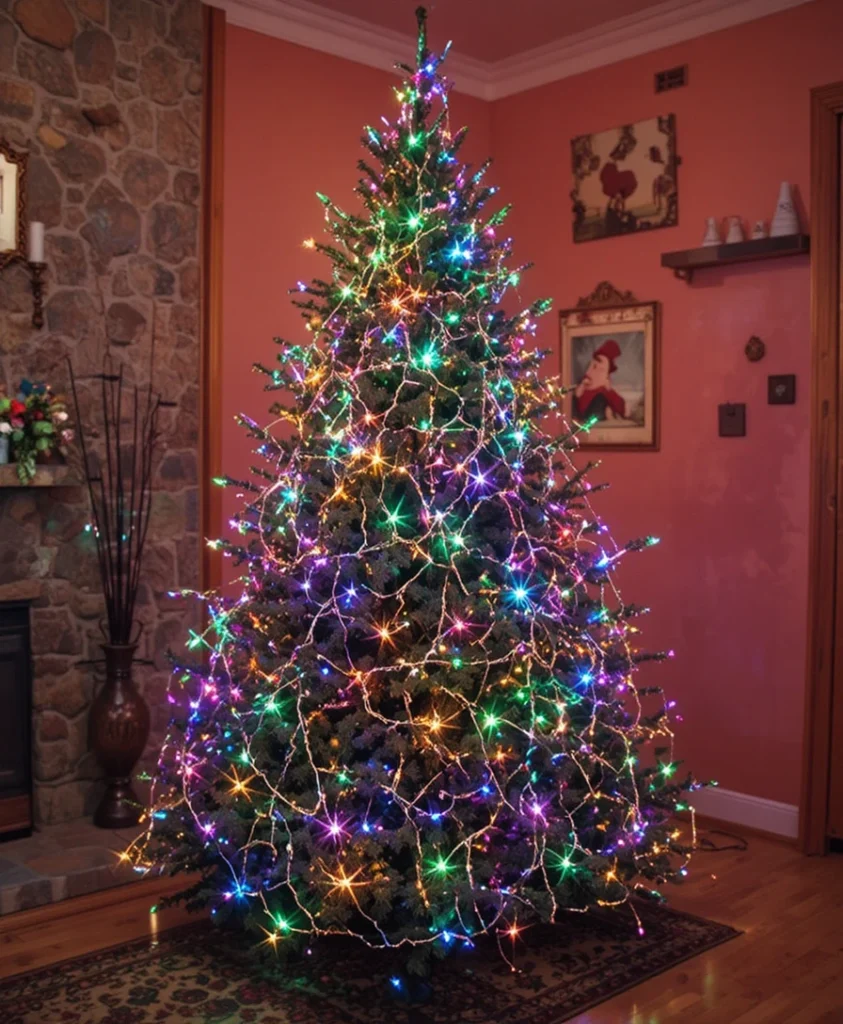 Color-changing LED lights bring a dynamic energy to your tree. With programmable patterns and sequences, this style lets you alternate between vibrant hues, offering a modern twist on classic Christmas tree string ideas.