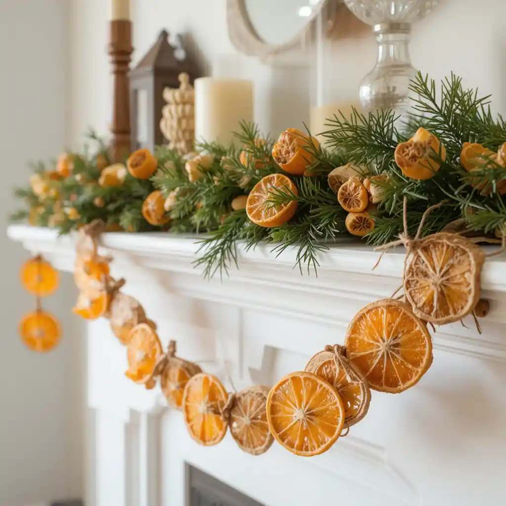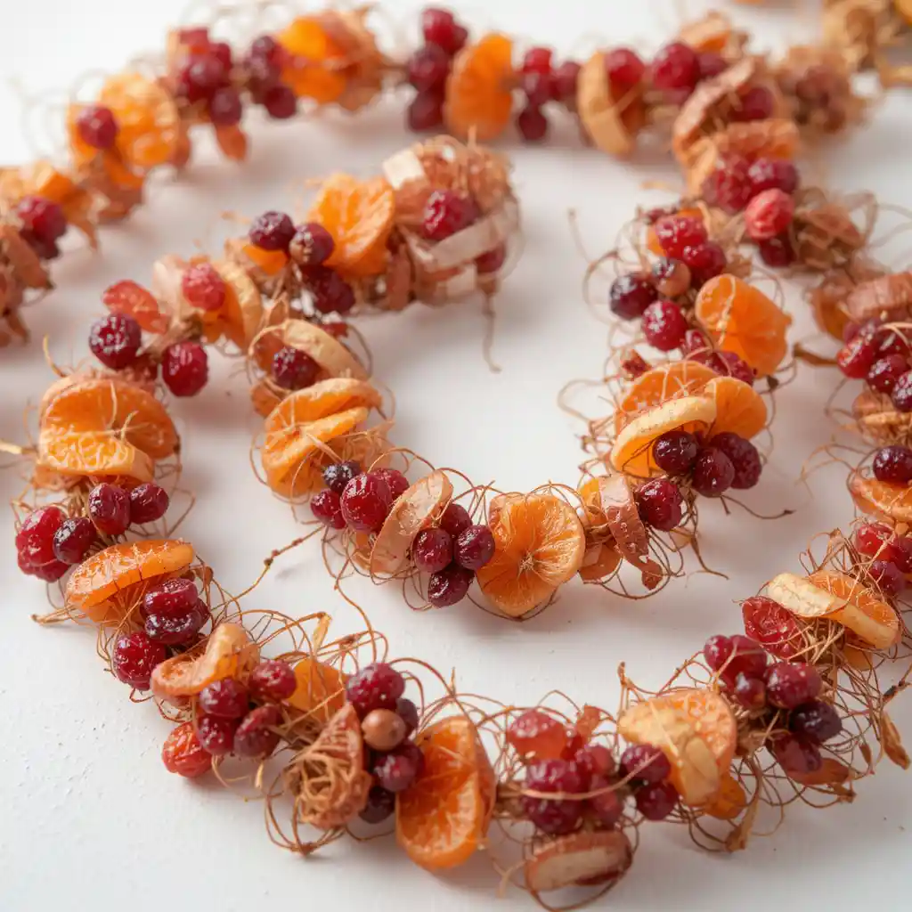 Blend dried cranberries with oranges or apples to craft vibrant garlands. This idea adds pops of red that feel festive yet organic.