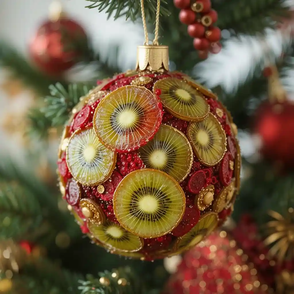 Kiwi slices add unexpected bursts of green. They pair well with traditional red and gold decorations, creating vibrant contrast.