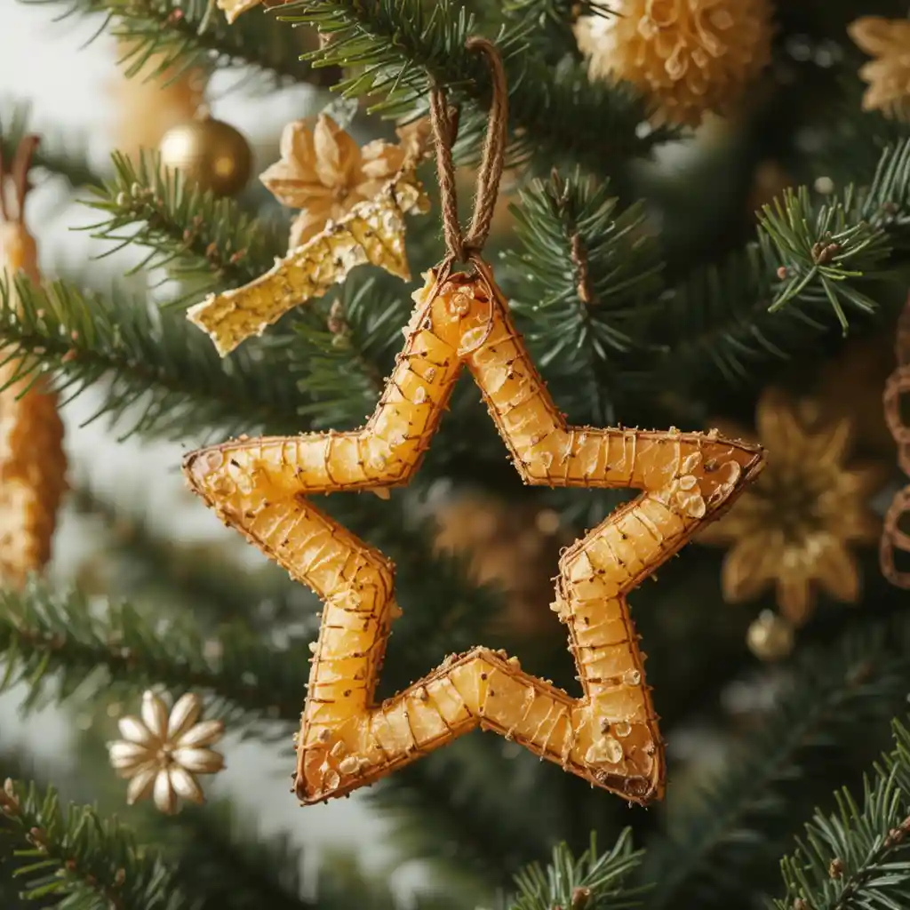 Mix dried orange slices, apple rings, star anise, and cinnamon sticks. This dried fruit Christmas decoration spreads festive fragrance while doubling as décor.