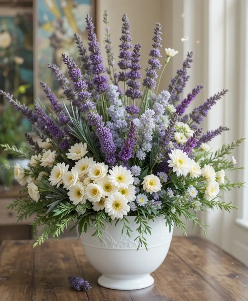 I love combining lavender with herbs like rosemary and thyme. This aromatic Easter Floral Arrangement not only looks beautiful but also fills the space with a calming scent, making it perfect for kitchens or entryways.