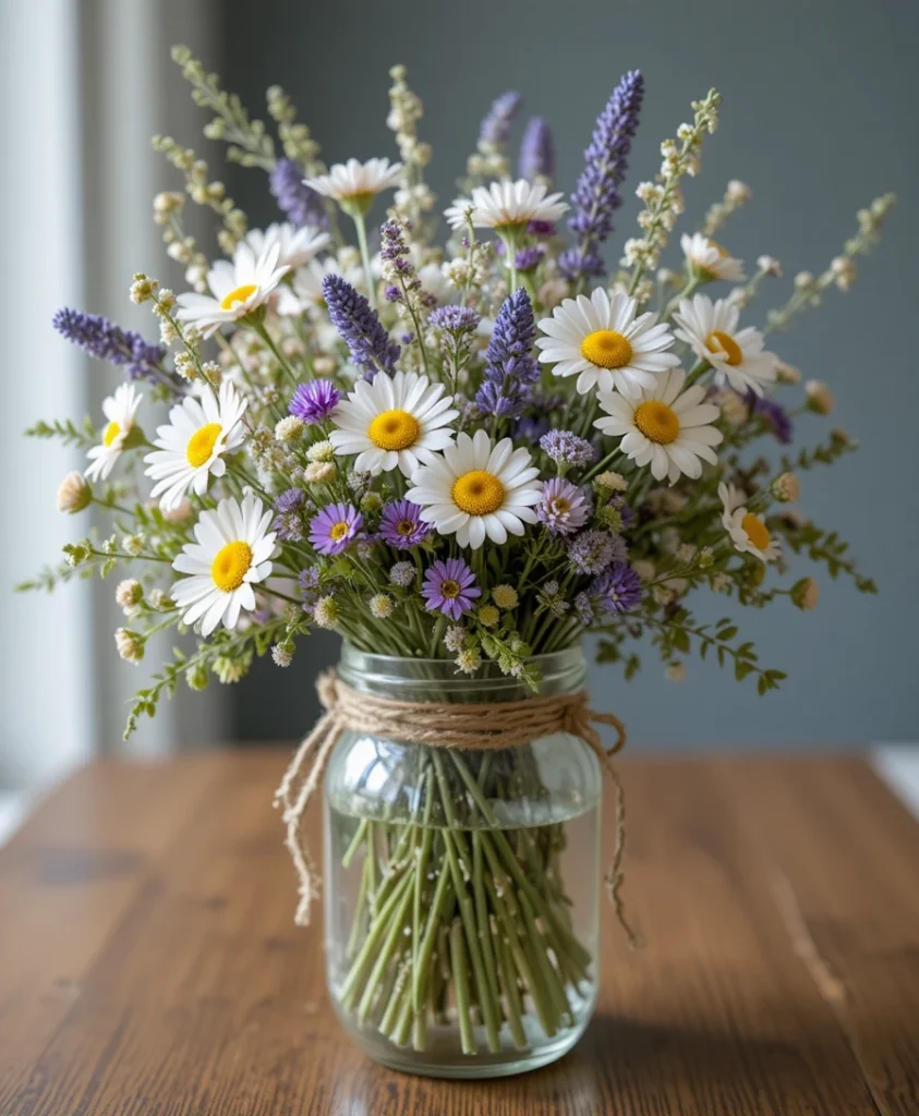 There’s something effortlessly charming about mason jars filled with wildflowers. I like mixing daisies, lavender, and small greenery stems for a relaxed, rustic Easter Floral Arrangement. Wrapping twine around the jar adds a handmade feel that works beautifully in cozy interiors.
