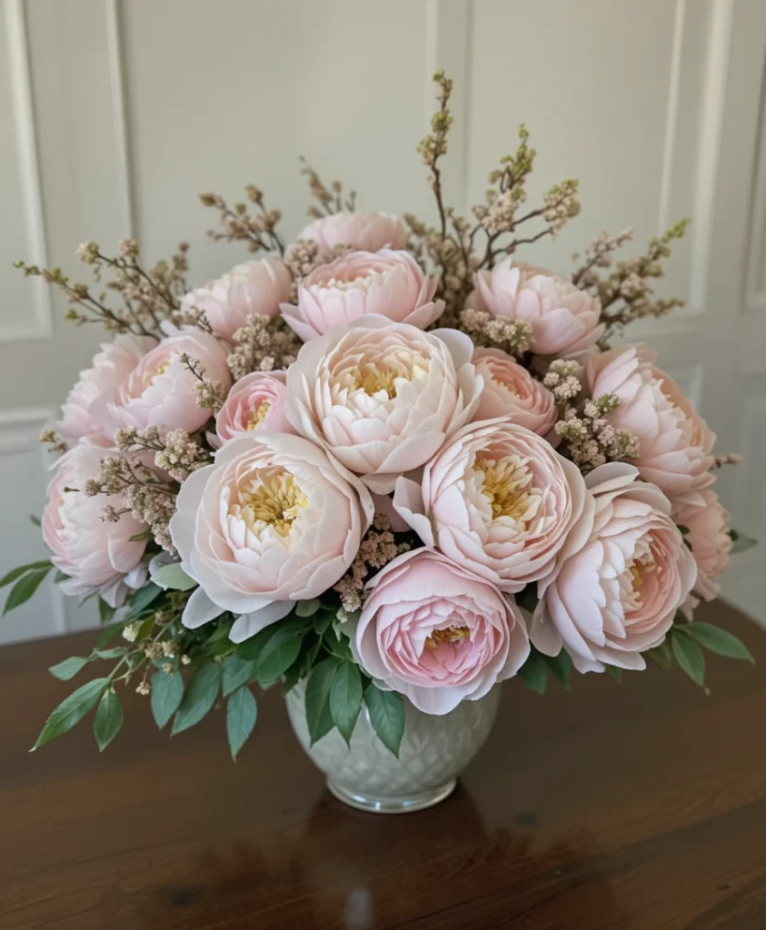 Peonies are my go-to when I want something lush and romantic. I arrange them in soft pink hues with subtle greenery for depth. This Easter Floral Arrangement feels rich and full, making it ideal for creating a warm and welcoming ambiance in living spaces.