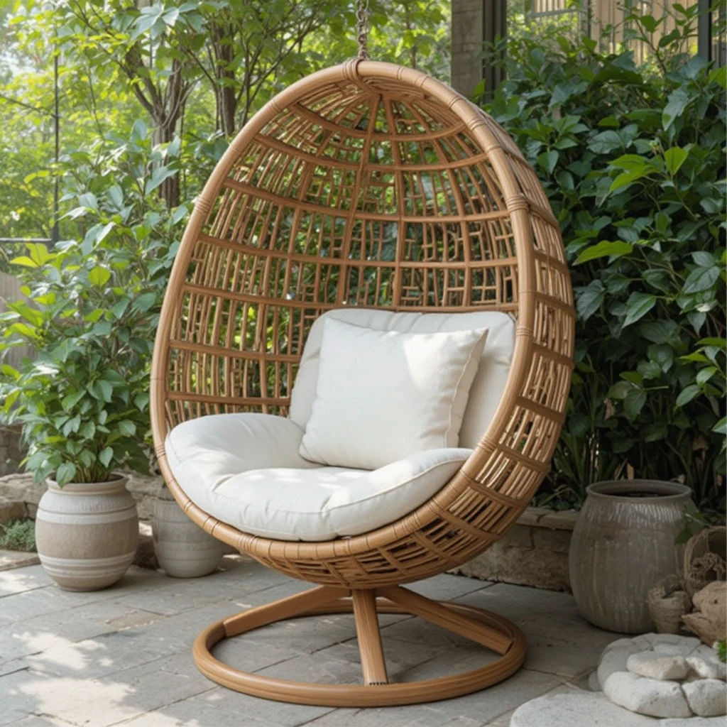 Boho-inspired rattan egg chairs celebrate texture and craftsmanship. In egg chair ideas 2026, these designs feature intricate weaving and natural finishes. Styled with layered cushions, they bring a relaxed, artistic energy to sunrooms, balconies, or casual living areas.
