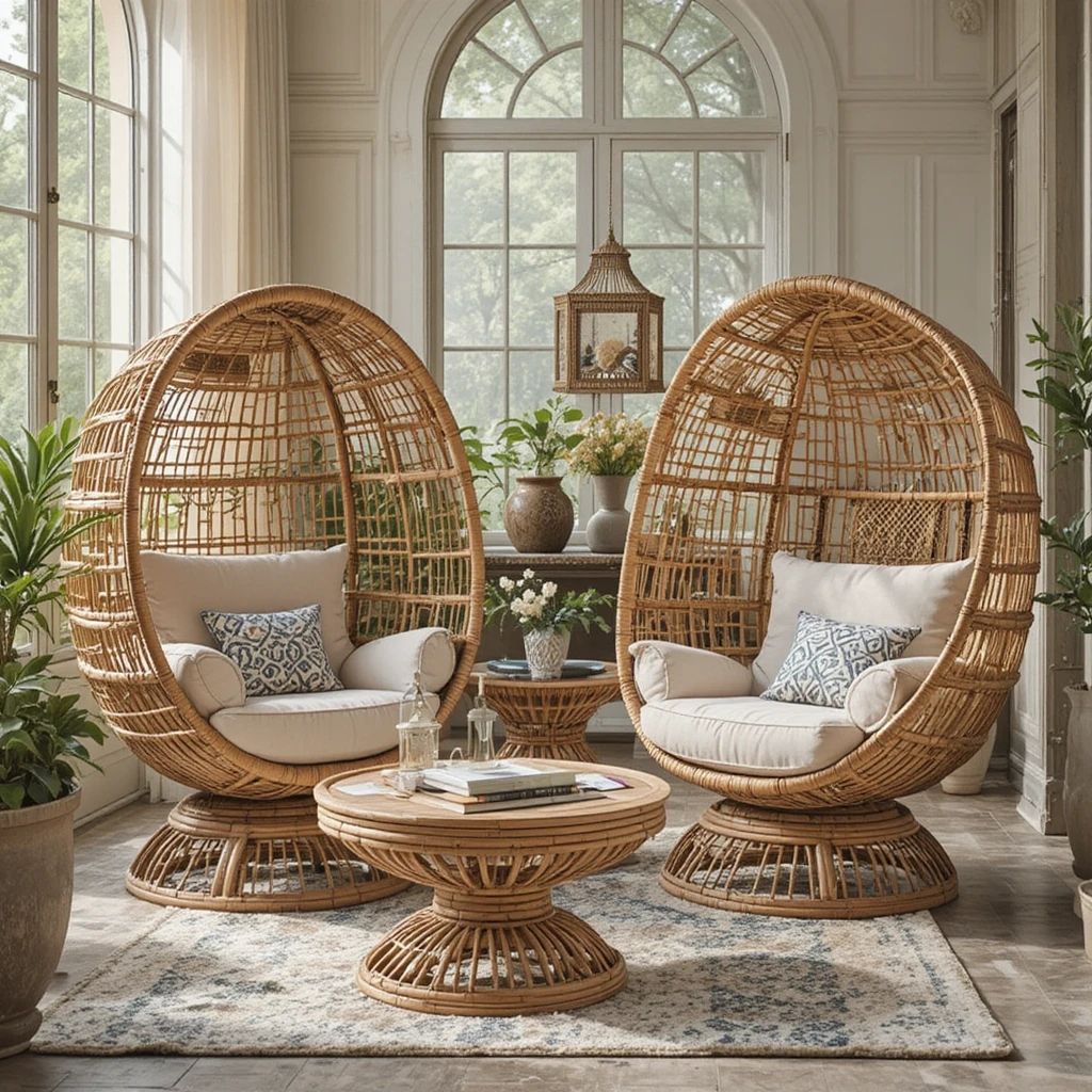 6. Bohemian Rattan Egg Chairs with Artistic Texture