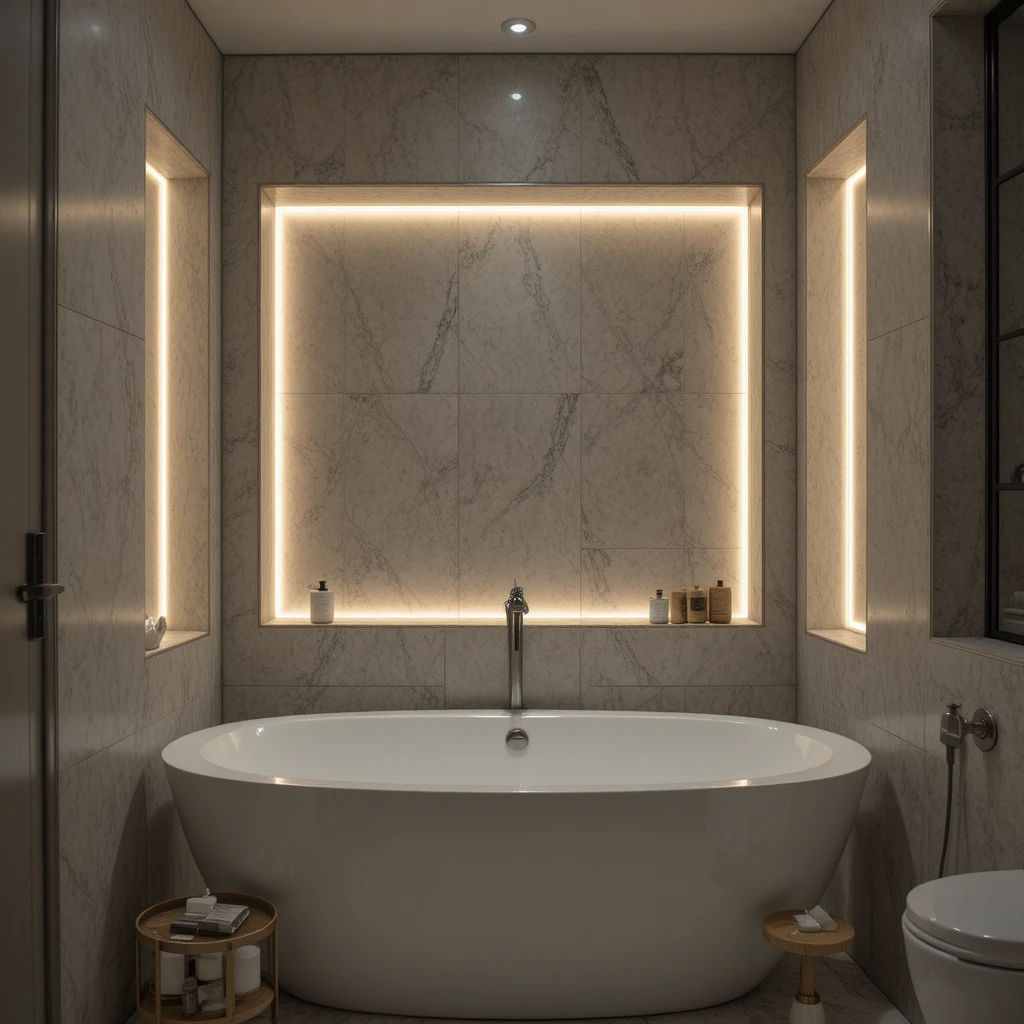 Recessed niches in the shower or above the bathtub offer stylish storage while elevating functionality. Add LED strips inside for a warm, highlighting effect. This subtle glow enhances the depth and sophistication of the niche. It’s a small yet powerful elegant bathroom trend that brings cinematic charm to the room.