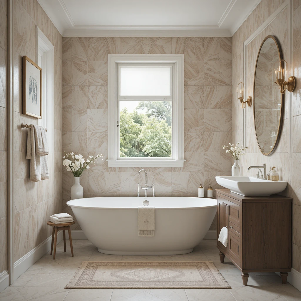 Incorporate gentle geometric shapes through tiles, rugs, or wallpaper to bring artistic expression to your bathroom. Choose soft lines and muted colors to maintain elegance. This adds personality without breaking the calm aesthetic. It aligns perfectly with the refined nature of the elegant bathroom trend.
