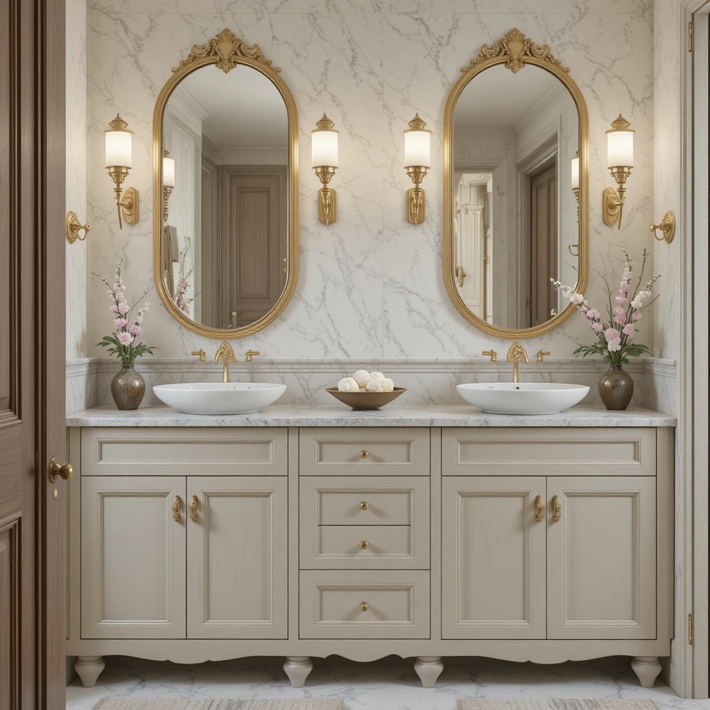 Introduce round mirrors with metallic frames to add sculptural geometry to your bathroom. The circular shape softens angular layouts and instantly modernizes the design. Choose champagne gold or brushed nickel for a refined metallic touch. Their reflective quality enhances brightness—an essential element of the elegant bathroom trend.